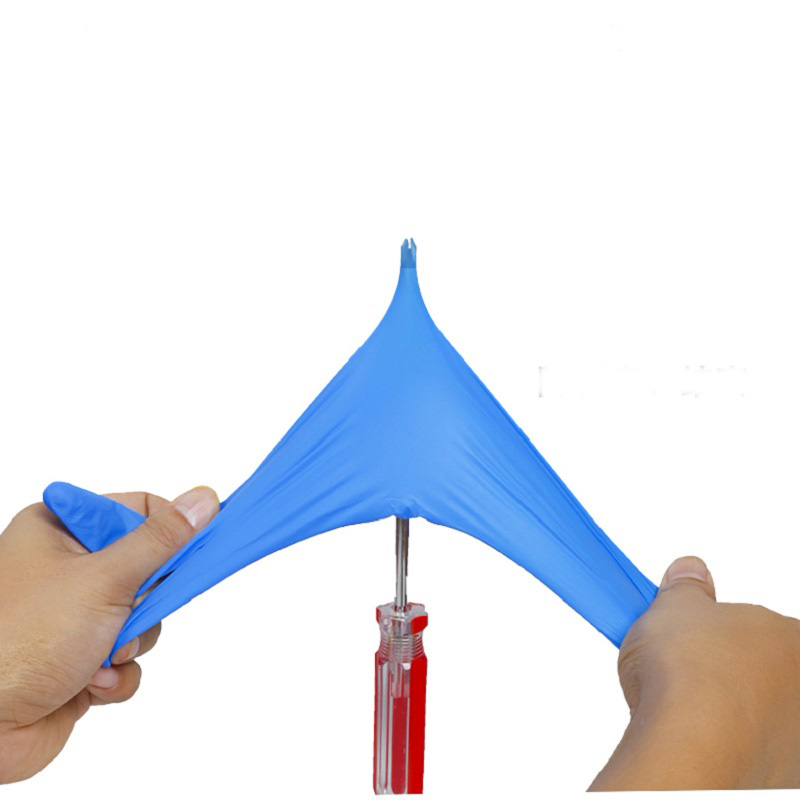 டிஸ்போசபிள் நைட்ரைல் கையுறைகள் அமில அழுகல், எண்ணெய் கறை, கை வடிவத்திற்கு பொருந்துகிறது, நீண்ட கால பயன்பாட்டிற்கு ஏற்றது. இது சிறந்த நெகிழ்ச்சி மற்றும் துளையிடும் எதிர்ப்பைக் கொண்டுள்ளது, இது உடைக்க எளிதானது அல்ல. இது வாட்டர் ப்ரூஃப், ஆண்டி ஸ்லிப் மற்றும் ஆன்டி ஸ்டேடிக்.