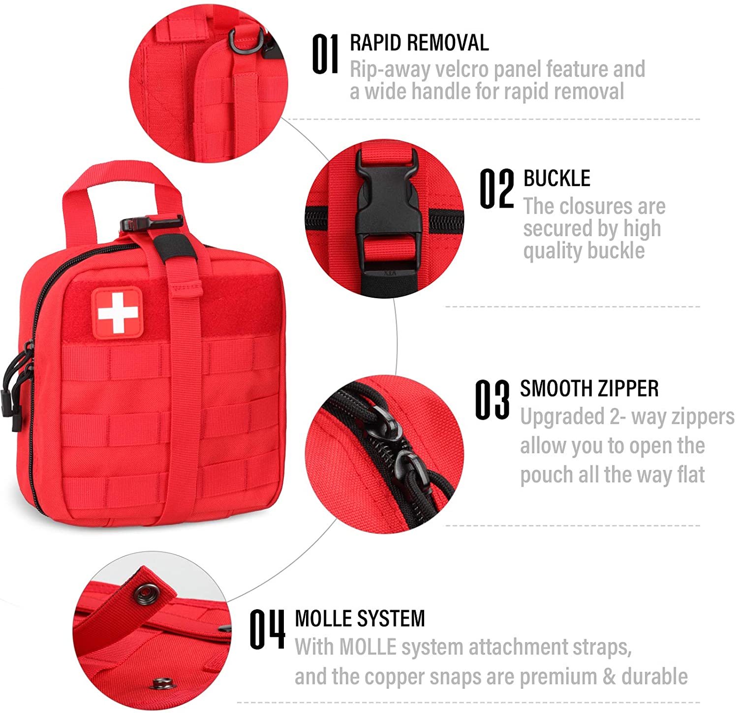 சிவப்பு தந்திரோபாய முதலுதவி இராணுவ மருத்துவப் பையின் பயன்பாட்டில் ரெட் கிராஸ் பேட்ச் அடங்கும்: ஷூட்டிங் வரம்பில் பயனுள்ளதாக இருக்கும் அல்லது ஒரு தந்திரோபாய சுமையின் ஒரு பகுதியாக ஒன்றாகச் சேர்த்து, இராணுவப் பணியாளர்கள், EMT, போலீஸ், தீயணைப்பு வீரர்கள் பயன்படுத்த முடியும். நாங்கள் 30 நாட்கள் பணத்தை தர உத்தரவாதத்துடன் வழங்குகிறோம்.